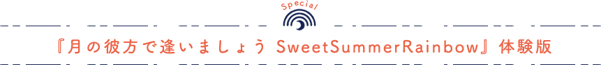『月の彼方で逢いましょうSSR』の体験版です。 スクール編(恋人パート)、アフター編(夫婦パート)の一部、エッチシーンを3シーンをお楽しみいただけます。 ※体験版では、『スクール編』のサンフランシスコに行くまで等の一部のシーンを割愛しております。 ※Hシーンはスタート画面の『エクストラ』よりお選びください。